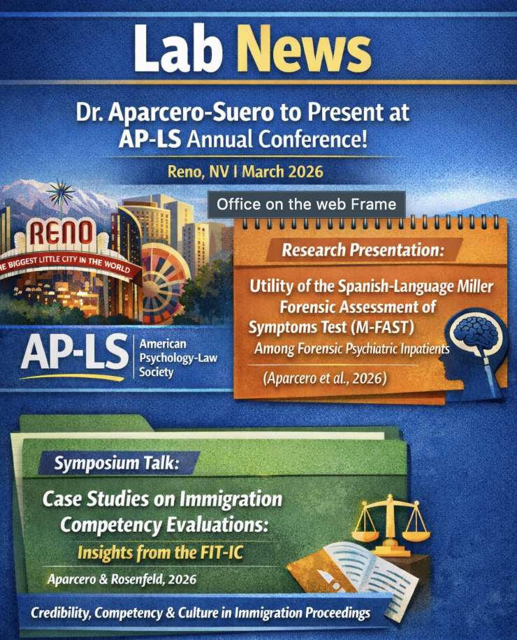 The Cross-Cultural Forensic Psychology Lab aims to advance evidence-based, equitable, and culturally responsive forensic mental health practices for the benefit of individuals with mental illness involved in the legal system, as well as to facilitate the work of legal and mental health professionals.